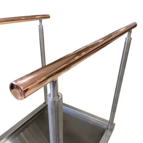 Dentro de las líneas de productos nuevos, estamos desarrollando pediluvios de acero inoxidable, básicamente es un limpia pies sanitario de uso doméstico e industrial, para instalar en los accesos de supermercados, restaurantes, clínicas, colegios y cualquier lugar de acceso público o privado. La desinfección se produce cuando el estanque inferior es llenado con un producto químico desinfectante y este permea la suela del zapato del peatón mediante una goma antideslizante. Adicionalmente combinamos el diseño con el uso del cobre, para entregar seguridad en cada pasada y una limpieza de manos aprovechando las propiedades antibacteriales del cobre. Un producto 100% hecho en Chile.