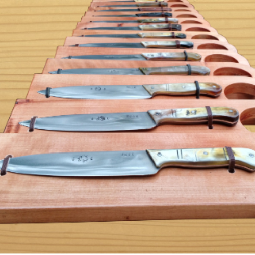 Fabricación de forma artesanal de cuchillos, cortaplumas, sets de asados y cubiertos en acero inoxidable y cacho de vacuno o madera.